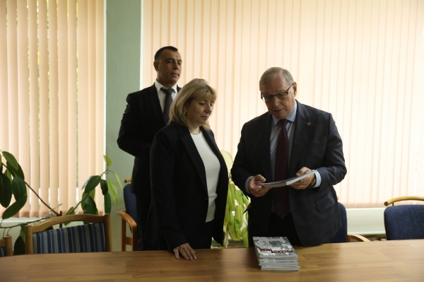 Далее российская делегация посетила гимназию имени С. Курогло, которая уже несколько лет входит в число лучших школ региона. Посол побывал на уроке русского языка и литературы, говорил о роли языка как моста между культурами. В подарок школе привезли несколько экземпляров свежего выпуска литературного журнала «Русское поле». Посол рассказал, что в нём собраны материалы о совместной истории и культуре России и Молдовы, которые помогут сохранить связь между народами.
