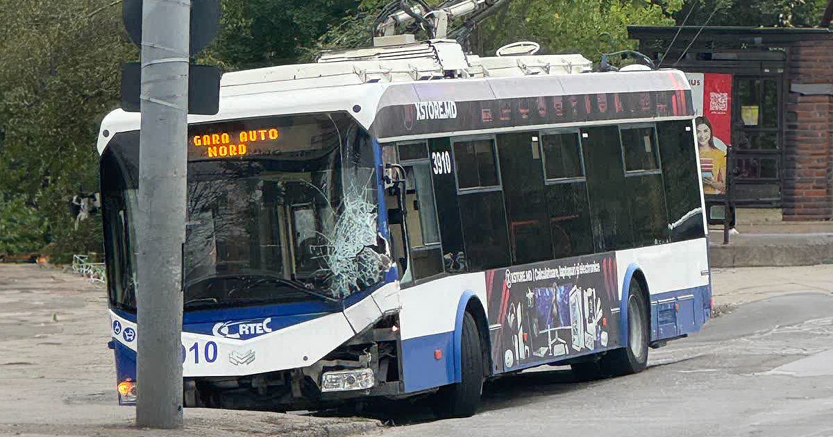 Сегодня утром на улице Измаил в Кишинёве грузовик врезался в троллейбус маршрута №9, в котором находилось 6 пассажиров.