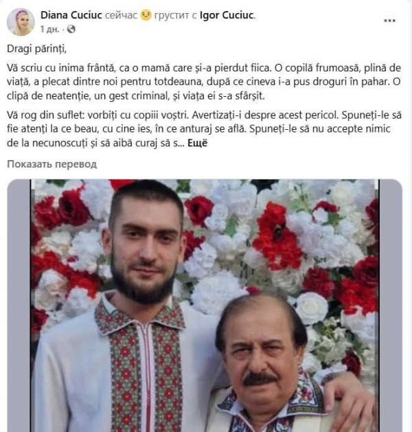 Мать девушки, скончавшейся в прошлом году в результате остановки сердца во время вечеринки в одном из столичных заведений, обратилась к родителям с призывом разговаривать со своими детьми и предупреждать их об опасностях, которые их окружают. В посте она также сообщила, что её дочь умерла после того, как "кто-то подсыпал ей в стакан наркотик". К посту в Facebook женщина прикрепила фотографию сына Николая Ботгроса, Кристиана, который в прошлом месяце был госпитализирован, предположительно, из-за передозировки наркотиками. Таким образом Диана Кучук еще больше подогрела слухи о том, что якобы Кристиан Ботгрос был связан со смертью Андреи, пишет unimedia.info