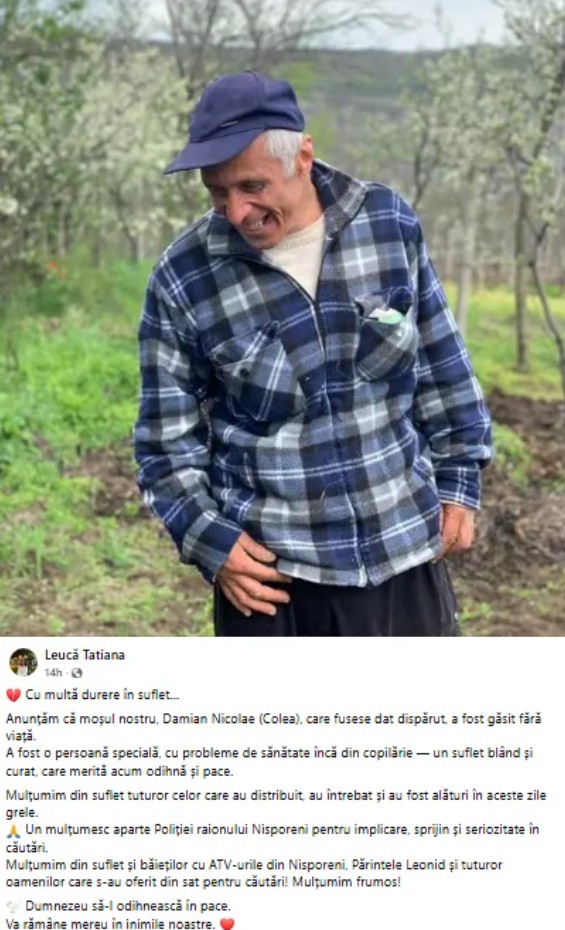 По её словам, Дамиан Николае с детства имел проблемы со здоровьем, был человеком с доброй и чистой душой. Родные выражают благодарность всем, кто участвовал в поисках, а также полиции за серьёзный подход и поддержку, пишет unimedia.info