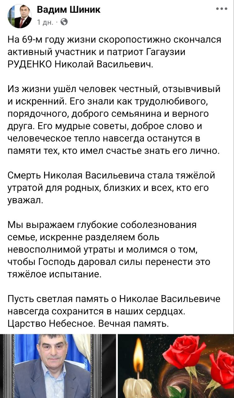 В Вулканештах на 69-м году жизни скоропостижно скончался Николай Руденко, активный участник и патриот Гагаузии.