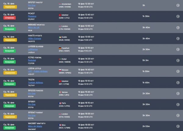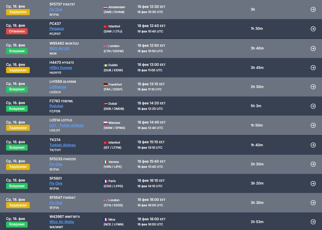 С задержкой отправляются самолёты в Амстердам, Дублин, Варшаву, Верону и Лондон.