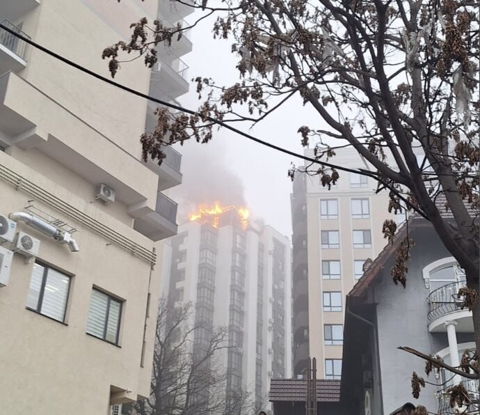 Сегодня утром в Кишинёве на бульваре Ренаштерий Национале на крыше 15-этажного дома вспыхнул пожар.